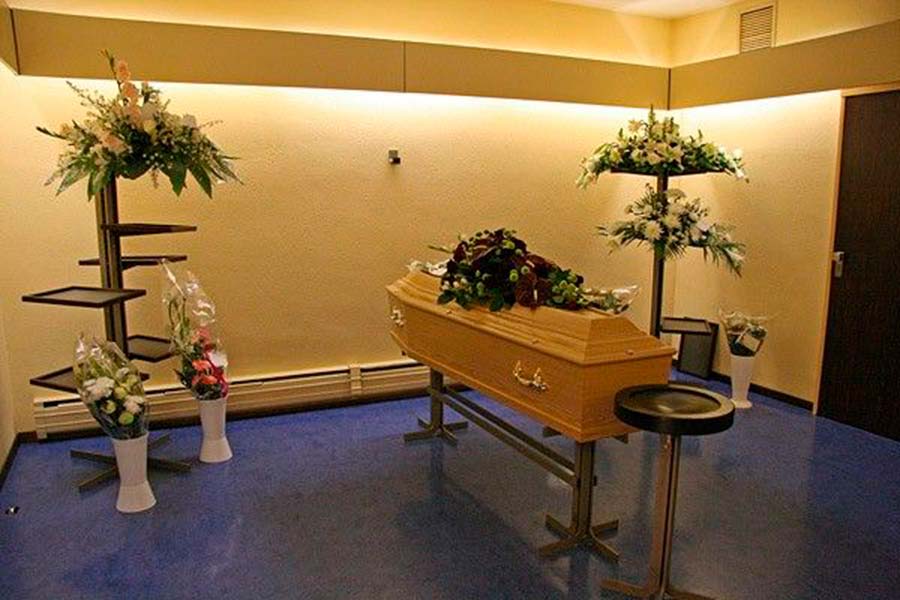 - Salle de réception et cafétéria (durant la crémation ou après l’inhumation au cimetière)